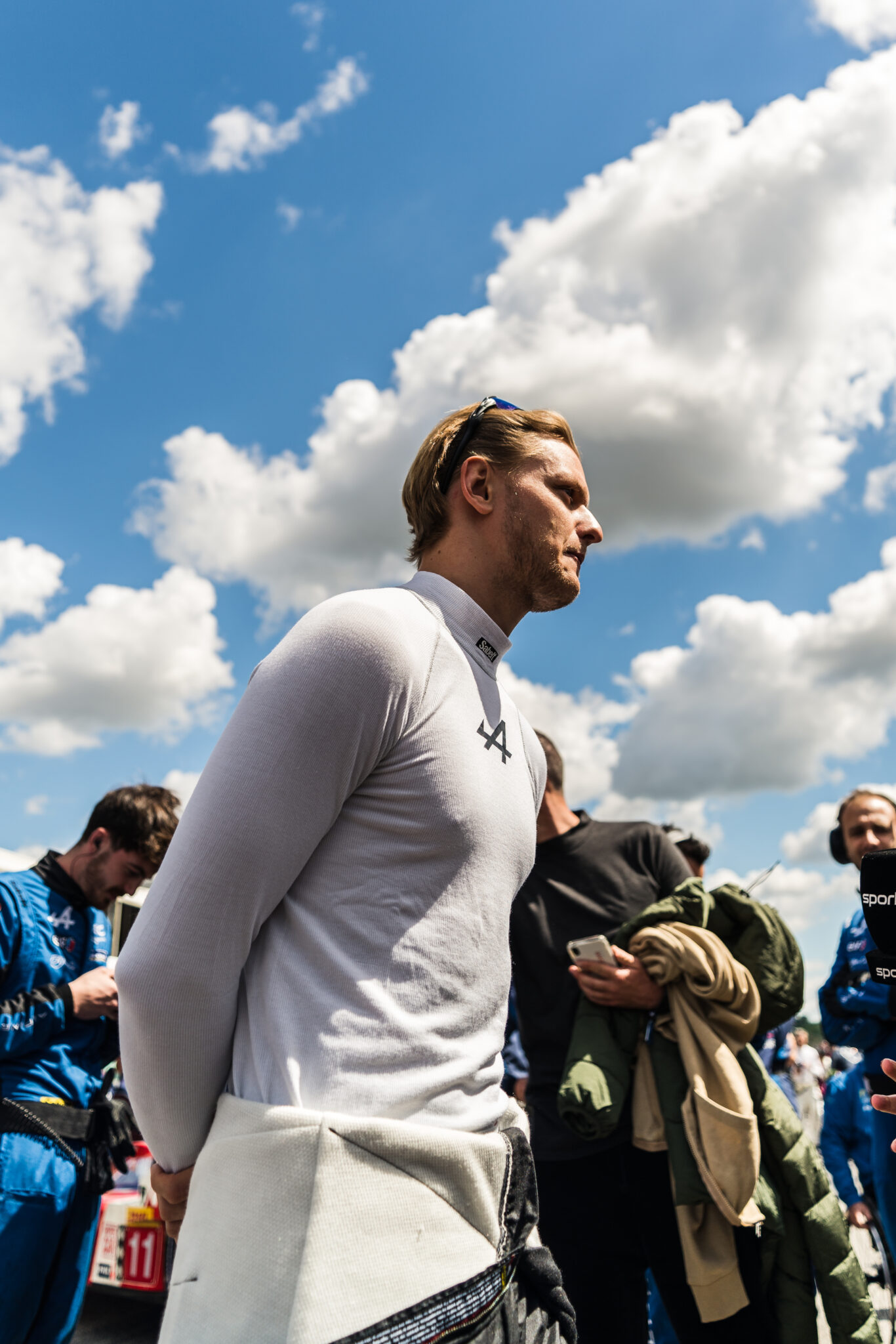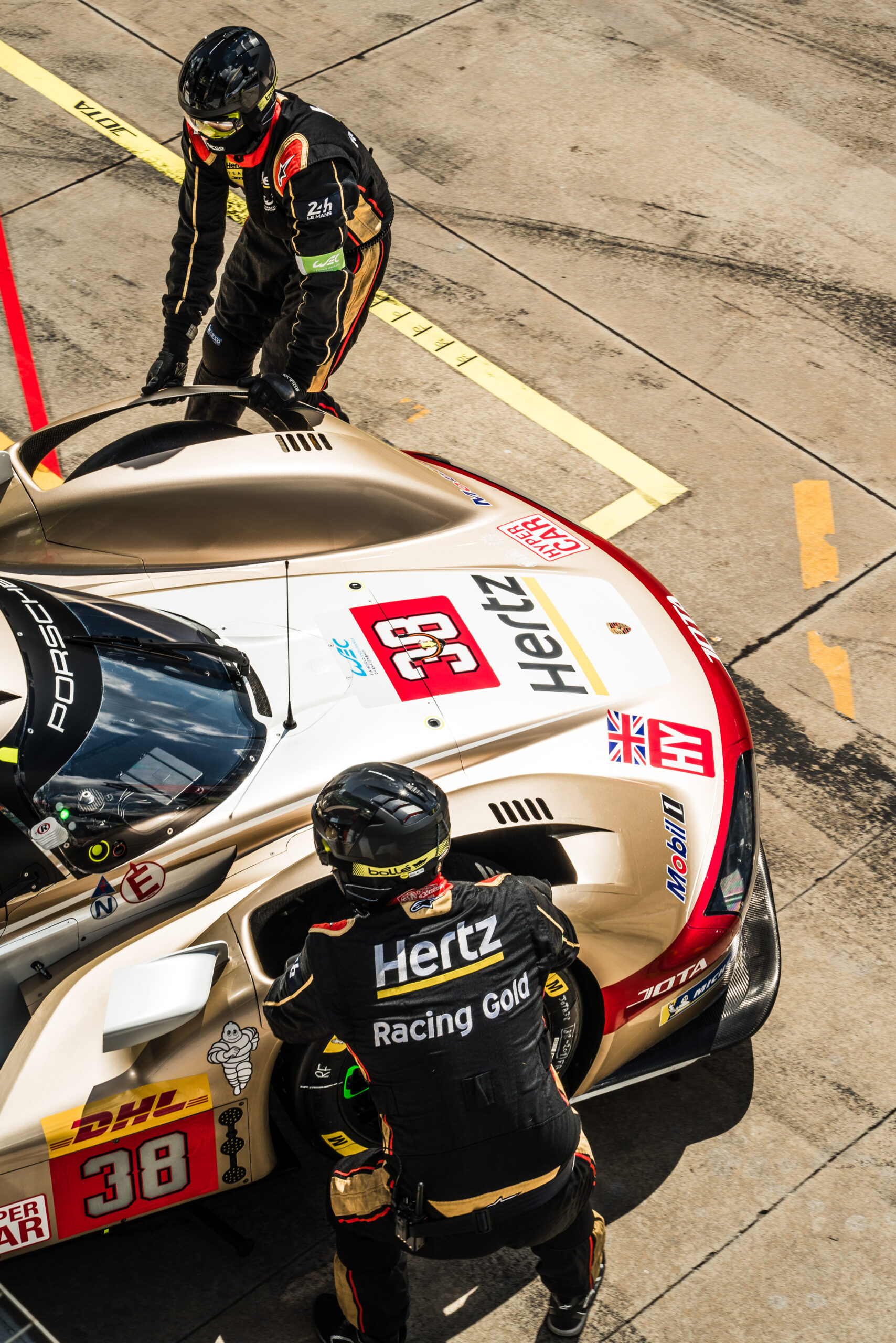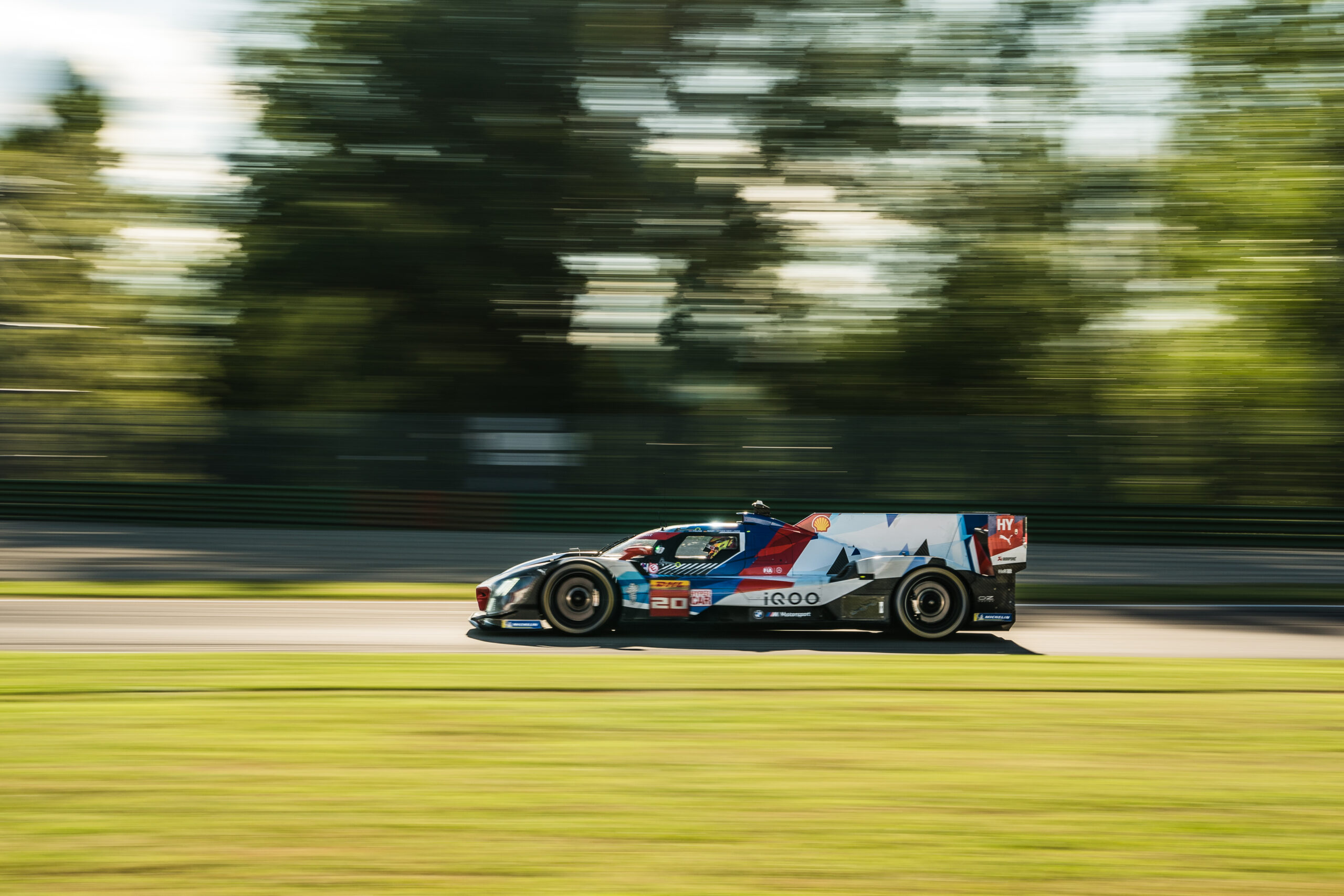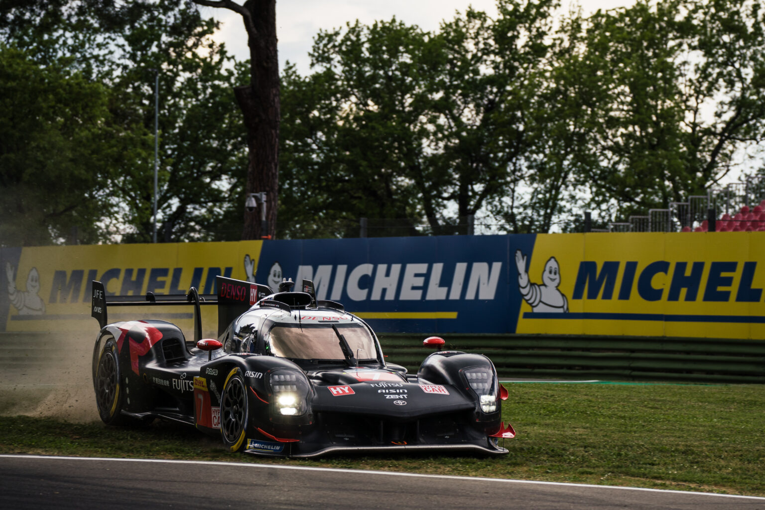 Three race cars navigate a corner at the Imola Circuit, passing DHL banners