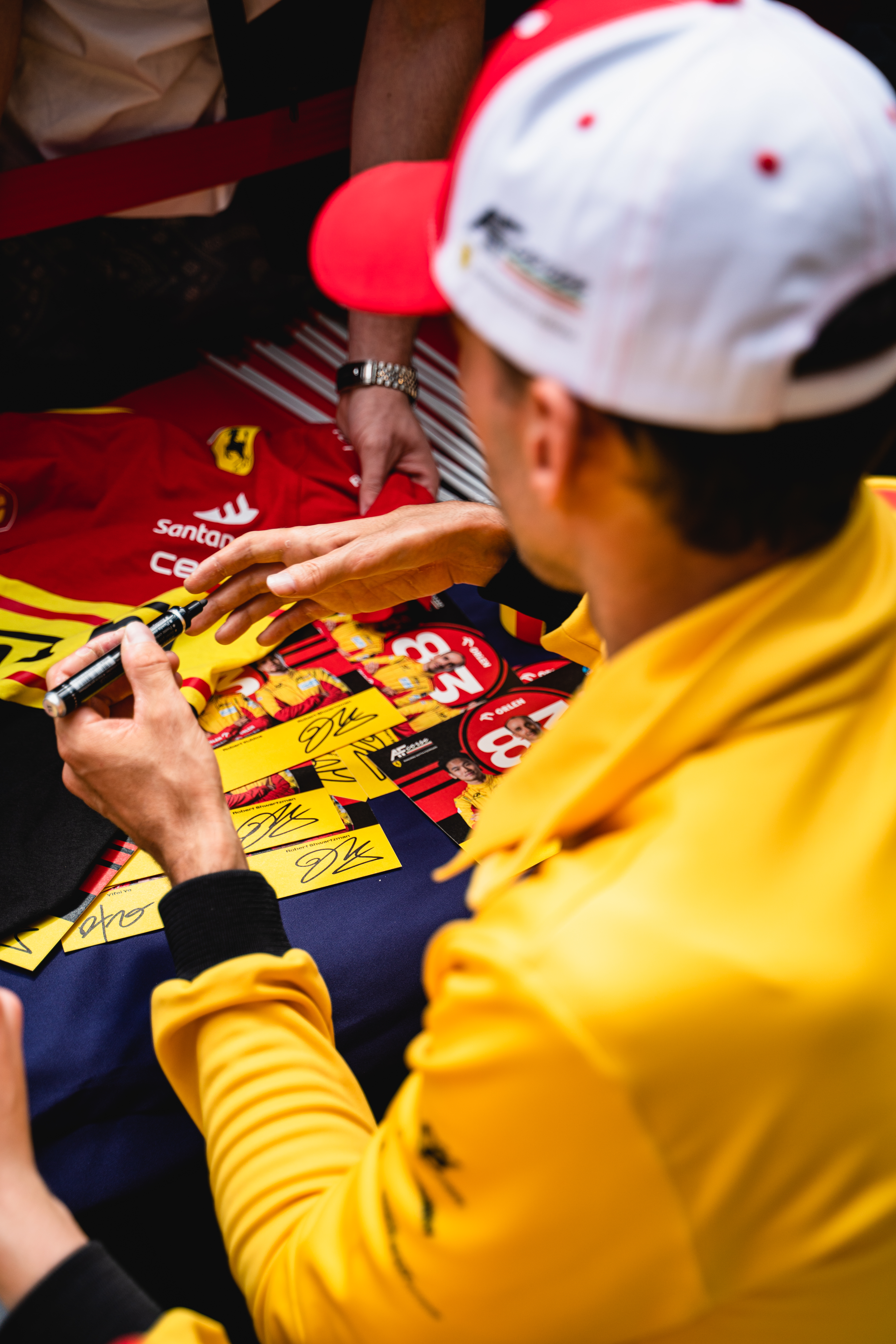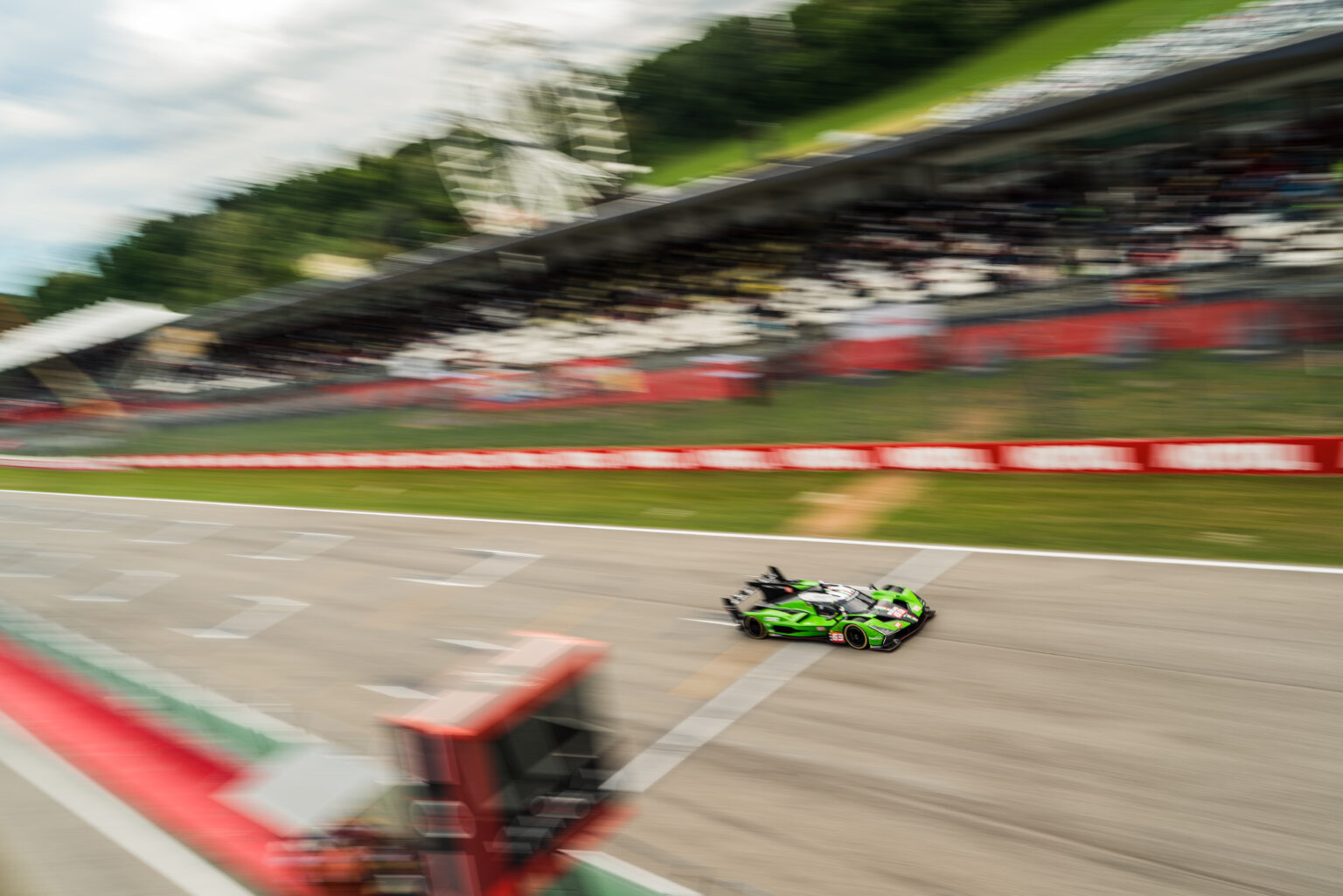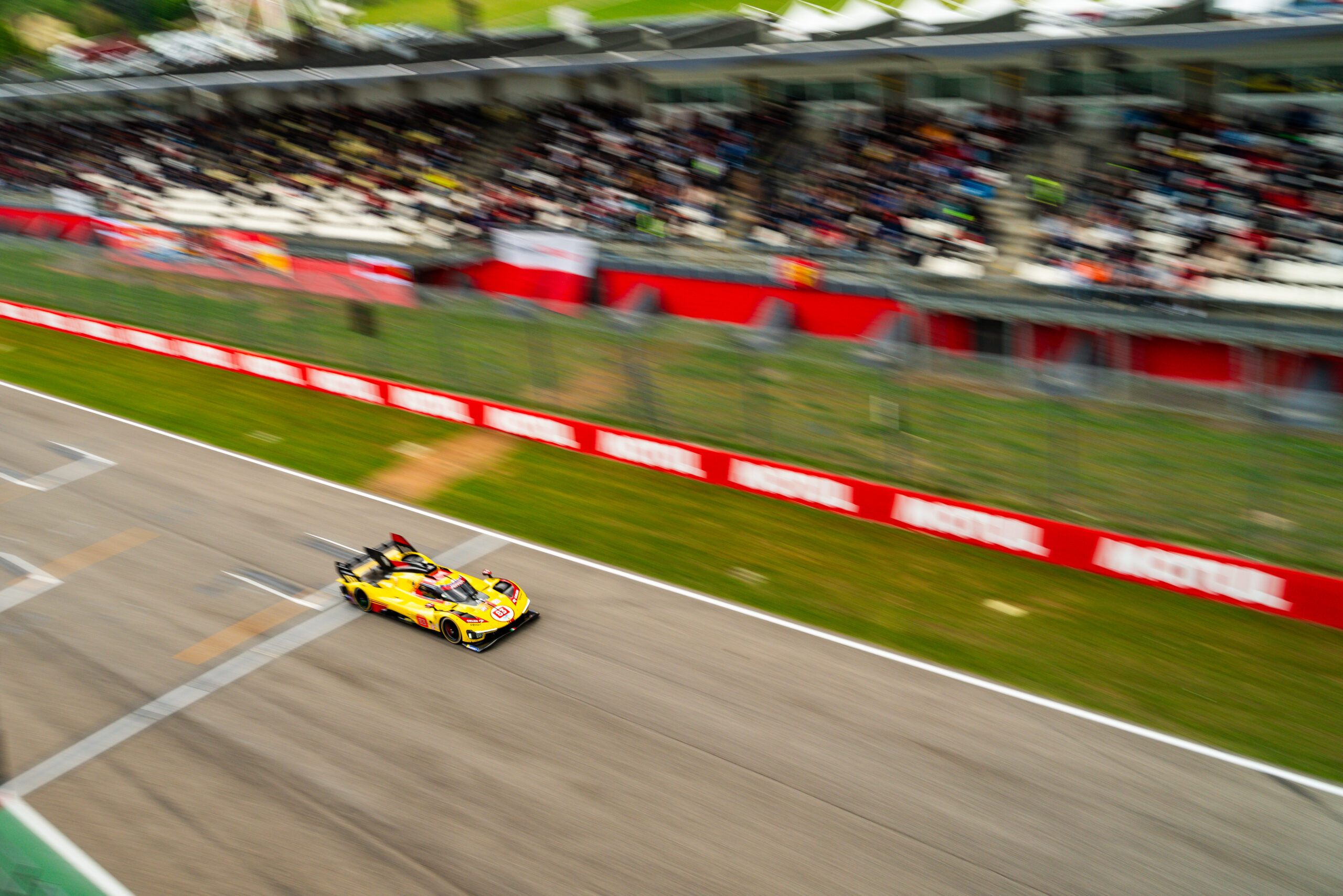 Ferrari flag waves high above fans at the Imola Circuit during a race