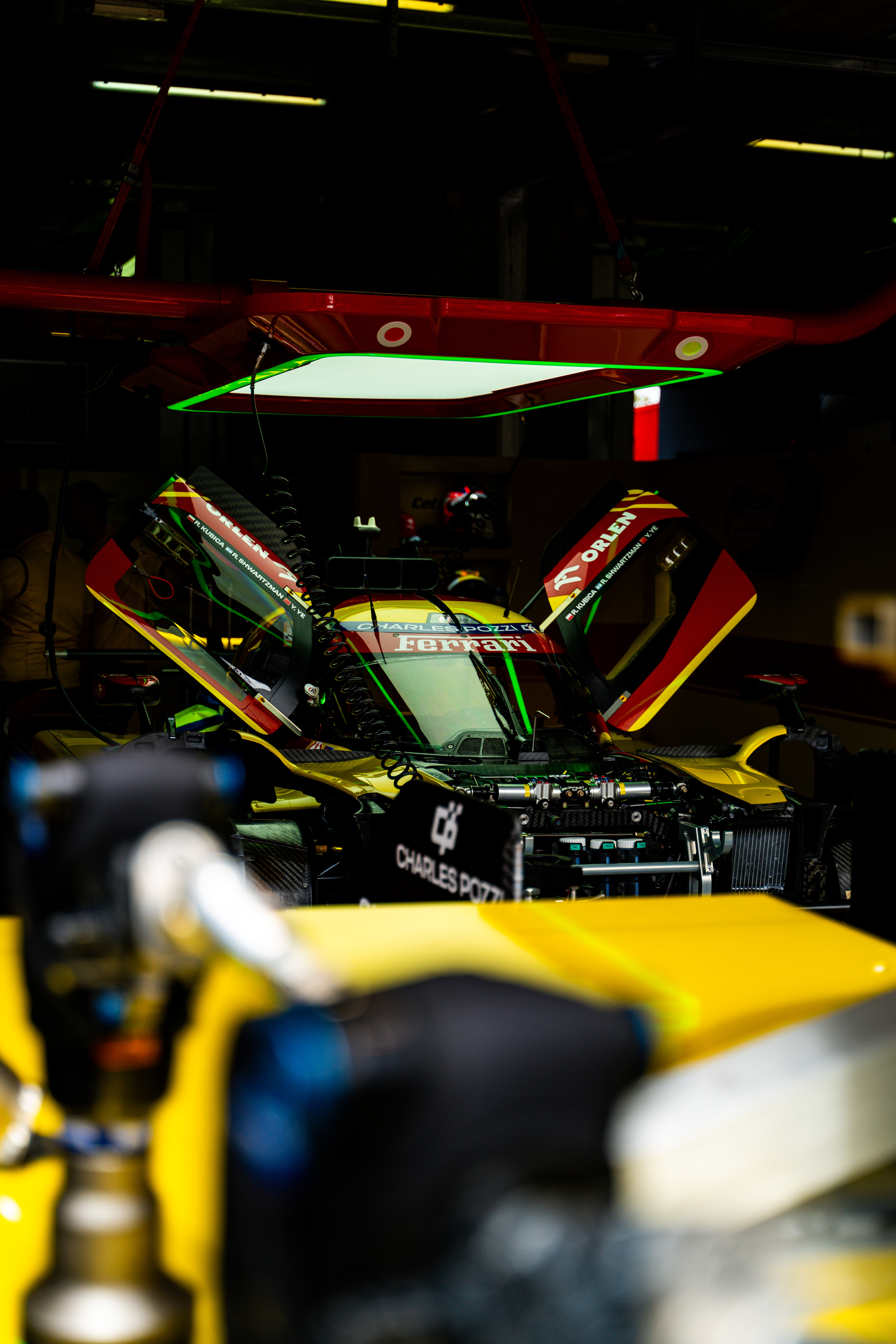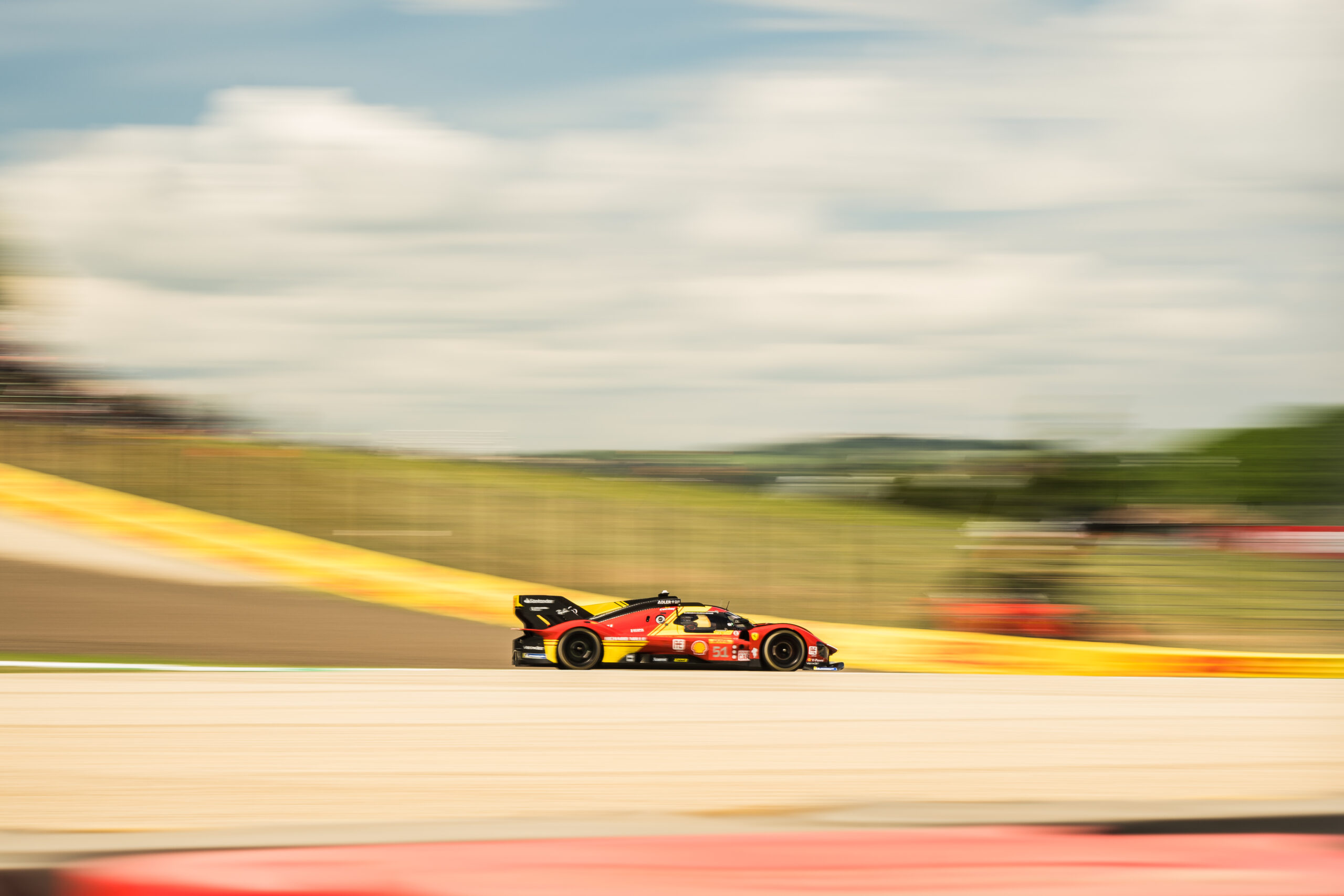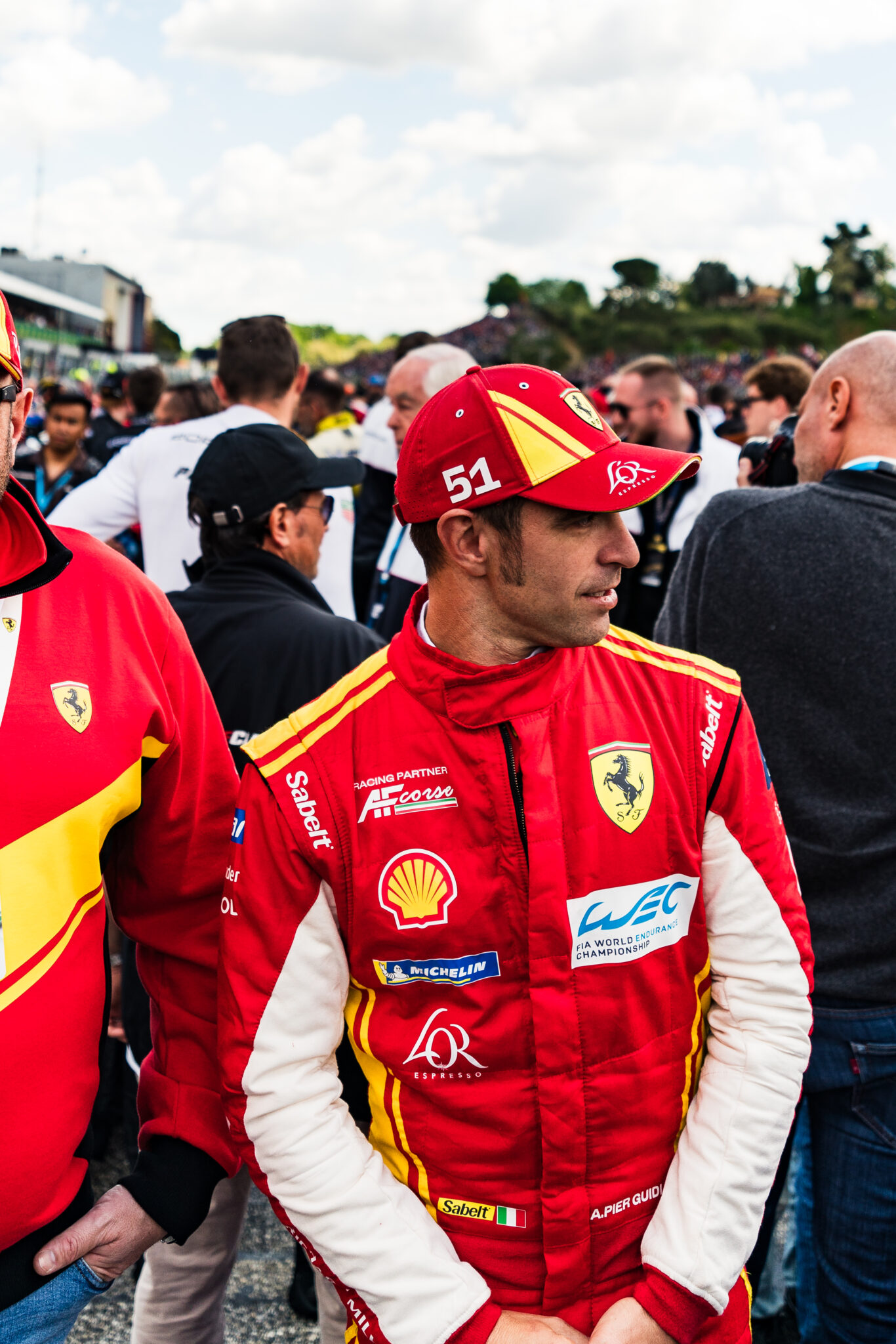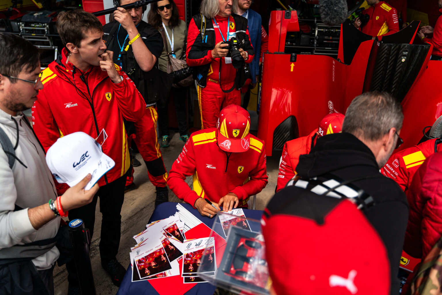 Ferrari flag waves high above fans at the Imola Circuit during a race
